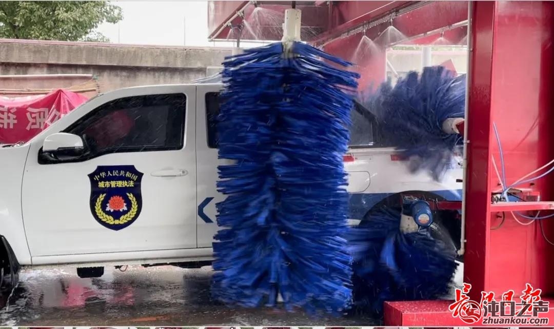 武汉经开城管有个“洗车神器”,两三分钟自动洗完一辆车