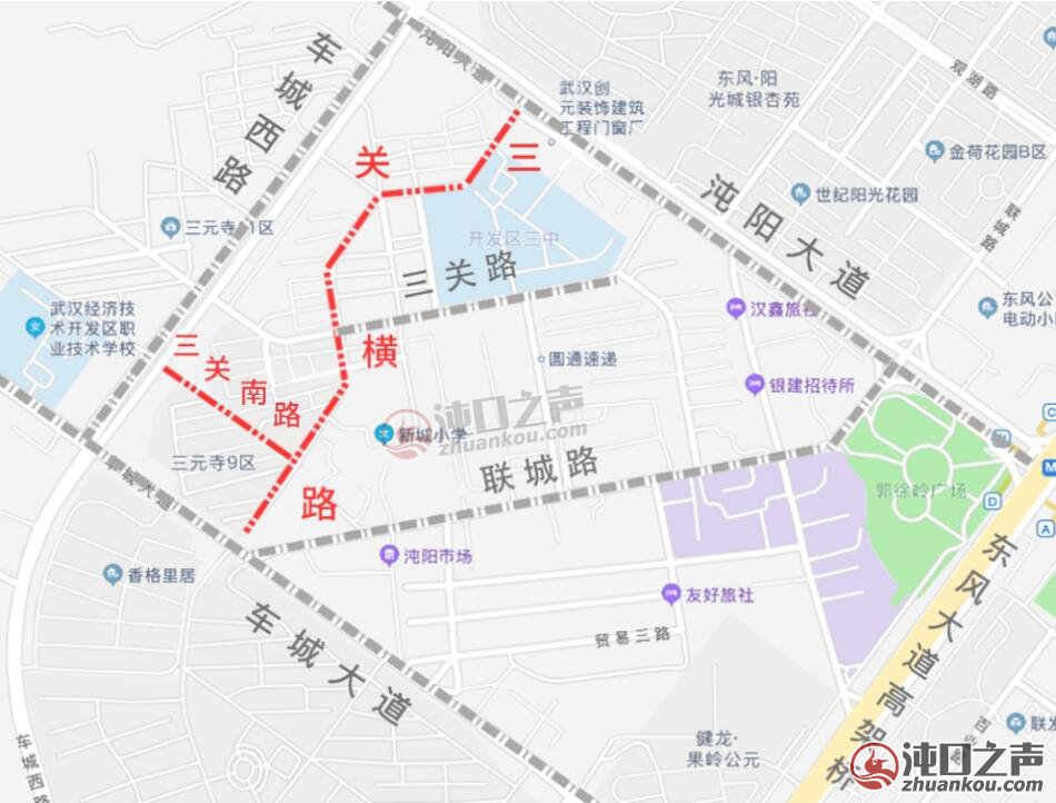 武汉市又有一批道路有了标准地名。2月3日,武汉市民政局发出关于公布全市部分道路标准地名的通告。根据《武汉市地名管理办法》相关规定,该局公布了全市部分道路(武昌区3条、江夏区2条、武汉经济技术开发区13条、东湖新技术开发区1条)标准地名。 一、汉盛南巷Hànshèng Nánxiàng 地处武汉经济技术开发区(汉南区)沌口街道办事处辖区,大致南北走向,位于创业一路以东,硃山湖大道以西,西南起于车城南路,东北至汉盛街止。全长约292米,宽约8米。因该路位于汉盛街以南,故名。 二、打鼓渡南路Dǎgǔdù Nánlù 地处武汉经济技术开发区(汉南区)沌阳街道办事处辖区,东西走向,位于江大园以北,打鼓渡以南,东起于三角湖边,向西至博学路止。长约468米,宽约10米。因位于打鼓渡河南岸,故名。 三、联城路(延长线)Liánchéng Lù 地处武汉经济技术开发区(汉南区)沌阳街道办事处辖区,大致南北走向,位于东风大道高架桥西侧,西南起神龙大道和联城路交汇处,东北至金凯三路。长约220米,宽约10米。该路为联城路东北向延长线,故名。延伸后,该路西南起车城大道,东北止于金凯三路,全长约1900米,宽约10米。 四、三关横路 Sānguān Hénglù 地处武汉经济技术开发区(汉南区)沌阳街道办事处辖区,位于车城西路以东,东风大道高架桥以西,东北起于沌阳大道,西南至车城大道。全长约741米,宽约5米。因道路横跨三元寺村和关帝村居民区,故名。