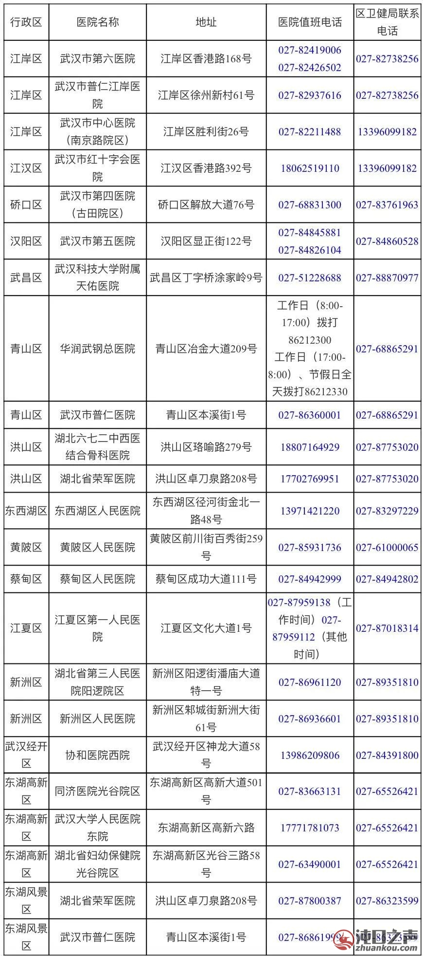 汉阳区“一点两区”人员非新冠疾病定点救治医院名单