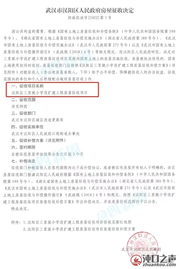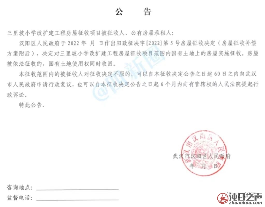 征地拆迁!汉阳区一小学改扩建征收公告!