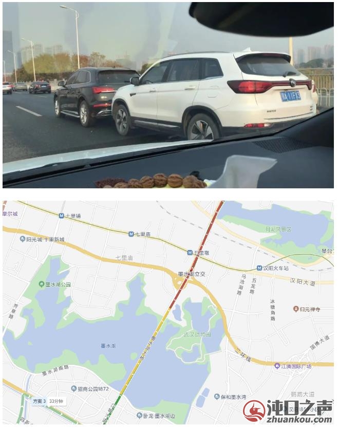 现场消息,刚刚,在墨水湖大桥汉阳往汉口方向,发生一起交通事故,现场汽车追尾,目前交通拥堵,建议车主绕行。