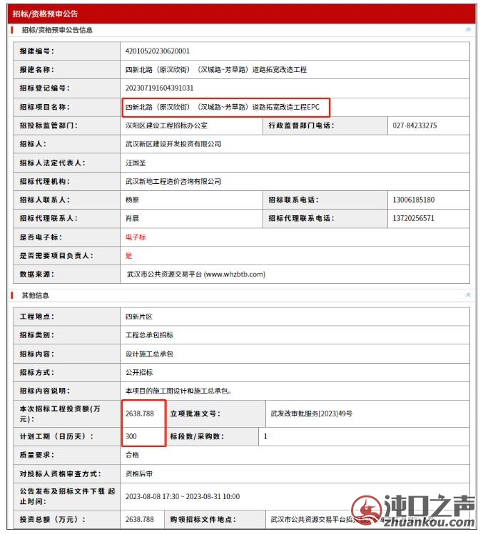 从武汉市公共资源网站获悉,四新北路(原汉欣街)(汉城路~芳草路)道路拓宽改造工程EPC正在招标。