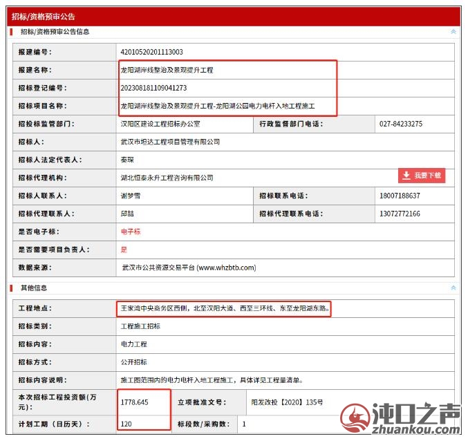 该项目建设绿地总面积184.1公顷,岸线全长约12.2km。主要建设内容为龙阳湖公园范围内的建筑工程、道路排水桥梁工程、照明亮化工程、岸线整治工程及配套绿化工程。总投资约为288965.67万元,其中工程费用约159974.25万元。 本次电力电杆入地工程施工招标投资1778.645万元。计划工期120天。 龙阳湖岸线整治及景观提升工程(二期)施工中标工期是两年,去年年底公布的中标结果,汉阳区今年第二季度集中开工分会场就是设在龙阳湖岸线整治及景观提升工程(二期)项目现场。 |