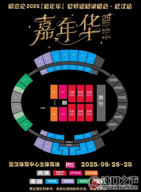 *现场座位图 冲冲冲,这是一场拼手速的大战,在这里祝愿所有沌口的杰伦fans能抢到本次演唱会的门票。 已确定·演出预告: 8.9 欢子 演唱会 武汉体育中心体育馆 9.26/27/28 周杰伦 武汉体育中心体育场 |