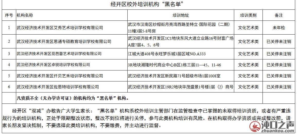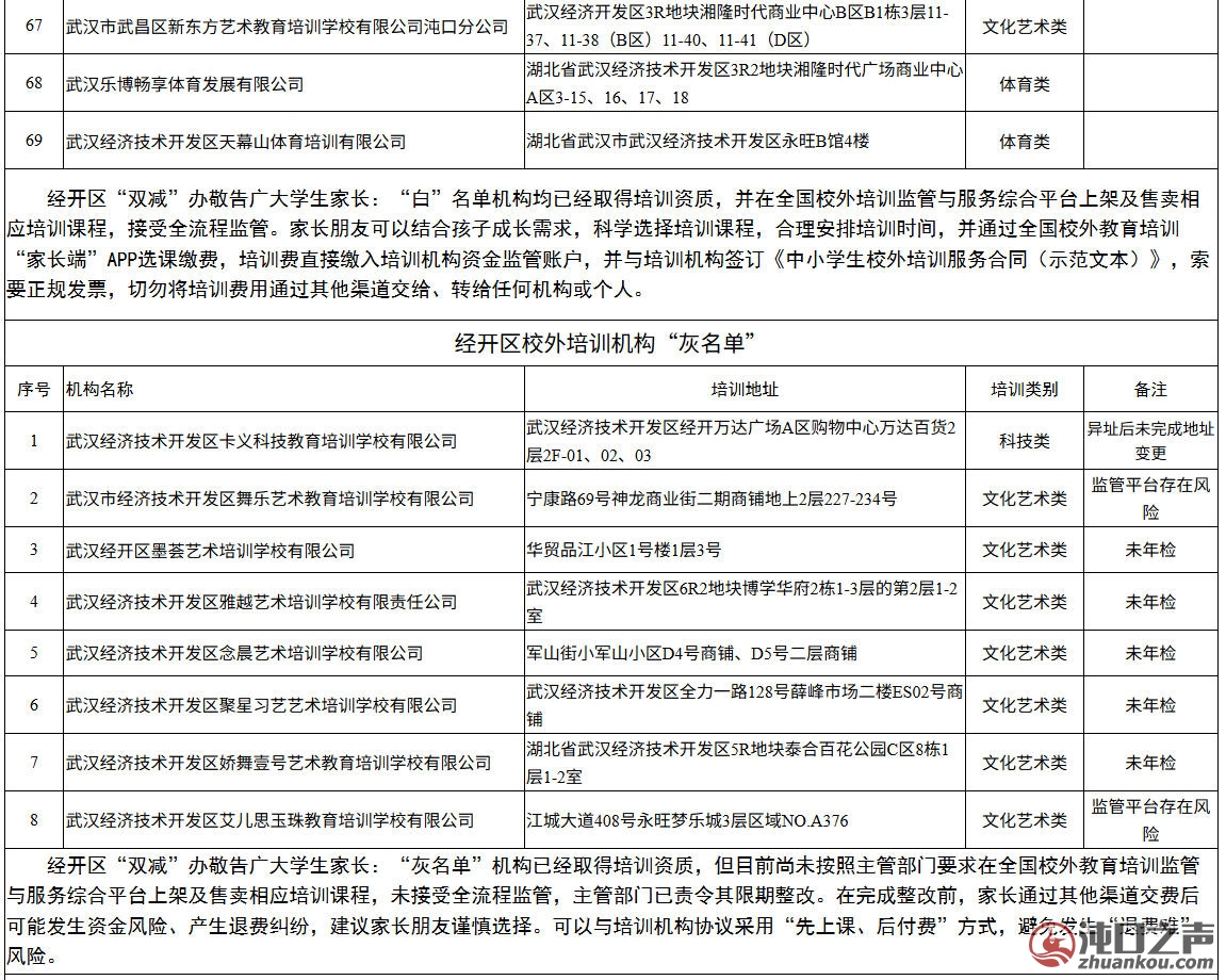 武汉经开区2025年校外培训机构“白、灰、黑”名单公示(第三季度)!