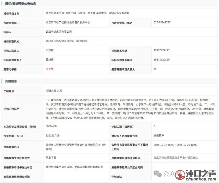 近日,武汉地铁集团有限公司发布武汉市轨道交通3号线二期、6号线三期工程自动扶梯、电梯设备采购项目,其中明确提及自动扶梯、电梯交货日期,这2条地铁线没有被遗忘,又燃起一片希望。 招标公告 一、建设规模: 武汉市轨道交通3号线二期工程线路起于文岭站,起点预留向北延伸条件,止于沌阳大道站(不含),线路全长11.9公里,均为地下线。 武汉市轨道交通6号线三期工程线路起于博艺路站,经博学路、车城西路,止于东风公司站(不含),线路全长约2.8公里,均为地下线。 二、本次招标范围: 武汉市轨道交通3号线二期工程共计53台自动扶梯、18台电梯及车辆段4台电梯;6号线三期工程共计22台自动扶梯、5台电梯。具体数量以招标文件为准。 三、标段划分: 共分为 1 个标段。 四、交货期: 3号线二期暂定2026年10月30日前设备开始到货、安装,或按招标人通知时间为准。 6号线三期暂定2027年3月30日前设备开始到货、安装,或按招标人通知时间为准。 本次招标工程:6600.488万元