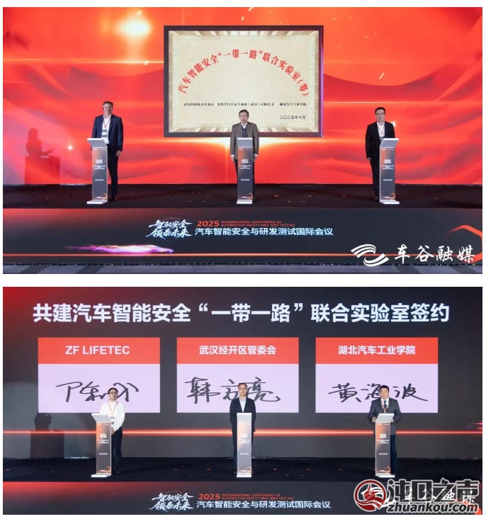 10月23日,2025汽车智能安全与研发测试国际会议在武汉经开区举行,采埃孚LIFETEC、湖北汽车工业学院与武汉经开区共建的汽车智能安全“一带一路”联合实验室(筹)揭牌成立,武汉经开区汽车智能安全产业创新联合实验室、武汉经开区汽车智能安全高价值专利培育中心同时揭牌。智能与安全,是未来汽车产业发展的“一体两翼”,武汉经开区联合企业、高校搭建科技创新平台,贯通从汽车智能安全创新链、产业链,迈出重要一步。 2025汽车智能安全与研发测试国际会议由采埃孚汽车安全系统(武汉)有限公司和湖北汽车工业学院主办,400余位来自世界各地的顶尖专家、学者、企业代表围绕“智驭安全 领泰未来”主题,共同探索构建汽车智能安全与研发测试产业新生态。