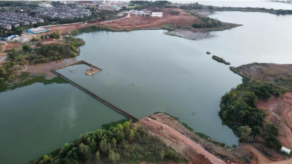 不远处,经开绿城·观湖悦棠现场一幅热火朝天的景象,挖掘机来回穿梭,施工人员忙碌不停。当前,桩基施工已全部完成,部分楼栋将在11月底达到正负零。项目规划新建包括3栋12层、2栋13层、2栋6层及1栋8层住宅楼在内的多种形态建筑组合,全线产品单梯独户,项目容积率低至1.1,充分体现了低密度社区规划理念,为未来业主预留了更为宽敞、舒适的居住空间与绿化环境,着力构建生态宜居型社区典范,为房地产市场发展注入新的活力。 配套设施加快施工 赋能发展能级提升 由集团投资建设的车城大道延长线工程围堰钢板桩施工成功贯穿后官湖两岸,标志着项目建设向前迈出重要一步。项目是武汉经开区沌口组团规划骨干路网的重要组成部分,建成后将成为大半岛片区东西向交通对外联系最便捷路径,对推动后官湖经济发展具有重要意义。