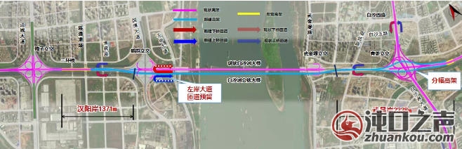 武汉枢纽直通线白沙洲公铁两用长江大桥三四线铁路及公铁接线工程示意图。 武汉市城投集团相关负责人介绍说,武汉枢纽直通线白沙洲公铁两用长江大桥三四线铁路及公铁接线工程(公路接线工程)武昌岸公路接线工程,全长2338米,起点位于武昌岸公铁分界点,向东沿三环线延伸,跨越青菱立交后接入三环线高架。同时,新建南郊路和白沙洲大道高架桥两处上下匝道,实现白沙洲高架与三环线的无缝衔接。汉阳岸公路接线工程全长1371米,起于梅子立交东侧,由西向东依次跨越连通港西路、连通港路、清枫路、木棉路、鹦鹉立交,止于鹦鹉立交西侧。 “公路接线工程不仅仅是新建一段高架桥,”项目负责人介绍,工程还将同步实施地面道路拓宽改造、拆除和改造人行天桥、排水工程、交通工程、照明工程、声屏障及相关附属工程,全方位提升区域交通通行能力。