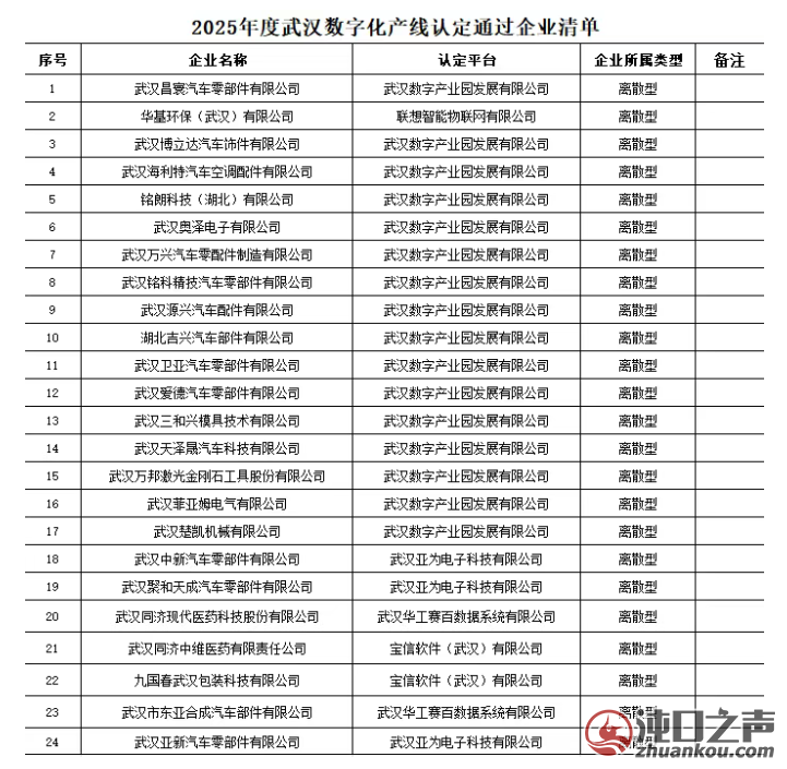 近日,2025年度武汉市数字化产线认定通过企业名单正式公布,武汉经开区共有24家企业成功入选,获评总数位居全市第一。