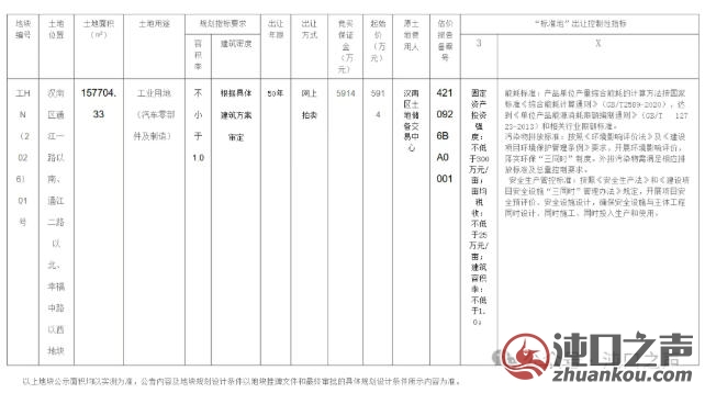 地通工业专注于汽车车身及底盘零部件冲压焊接、汽车冲压模具研发制造等业务,在国内乘用车零部件配套和相关模具开发领域具有较强竞争力,是吉利集团、一汽集团、比亚迪、北汽福田等多家国内外知名整车制造企业的核心供应商。 地通武汉基地项目总投资约20亿元,计划在武汉经开区建设生产厂房、研发大楼及检测中心,布局金属热成型、内高压、铝挤压、辊压成型等产线,生产新能源汽车车身覆盖件、底盘结构件、新能源电池箱体等汽车零部件,为吉利汽车提供核心配套。 吉利汽车将借助汉南莲花(路特斯)汽车工厂生产银河系列新车型,根据相关从业者透入,目前厂区内生产线正在积极改造中。 武汉市工业用地网上拍卖出让公告 武工告字(2026年)1号 经武汉经开区管委会批准,武汉经济技术开发区(汉南区)自然资源和城乡建设局按新增工业用地“标准地”出让要求,以网上拍卖交易方式出让1宗工业用地的国有建设用地使用权。现将有关事项公告如下: 一、公开出让地块的基本情况和规划指标要求(详见附表)。