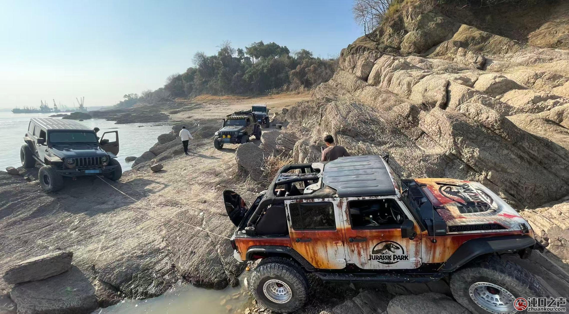 众多年轻人席地而坐,观看这秀美风光,场地内更是搭起了帐篷。 大军山山脚下,长江一侧,宛如一片充满挑战与激情的越野战场。一辆辆越野车如钢铁巨兽般傲然挺立,它们的车身线条刚劲有力,散发着一种不羁的野性。